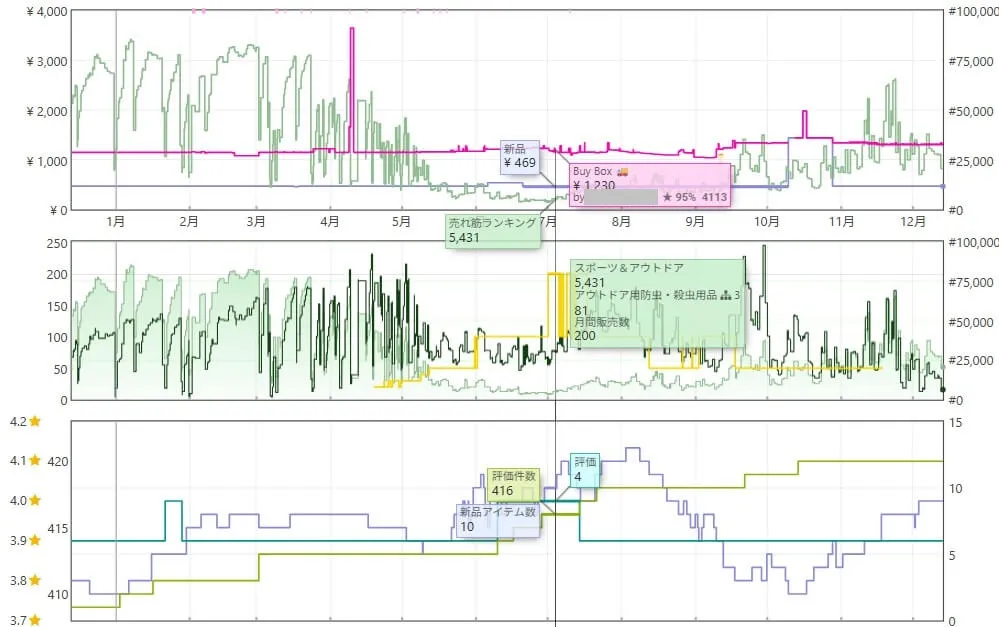 Keepaは単に「売れているかどうか」ももちろん把握できますが、