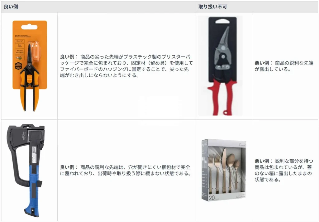 ※Amazonセラーセントラル「鋭利な部分を持つ商品の梱包」より抜粋