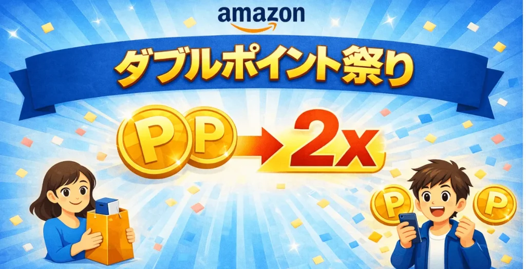 「ダブルポイント祭り」とは、大型イベントを開催していない全ての土曜・日曜に開催している、追加ポイント分をAmazonが負担してくれるポイントアップキャンペーンです。