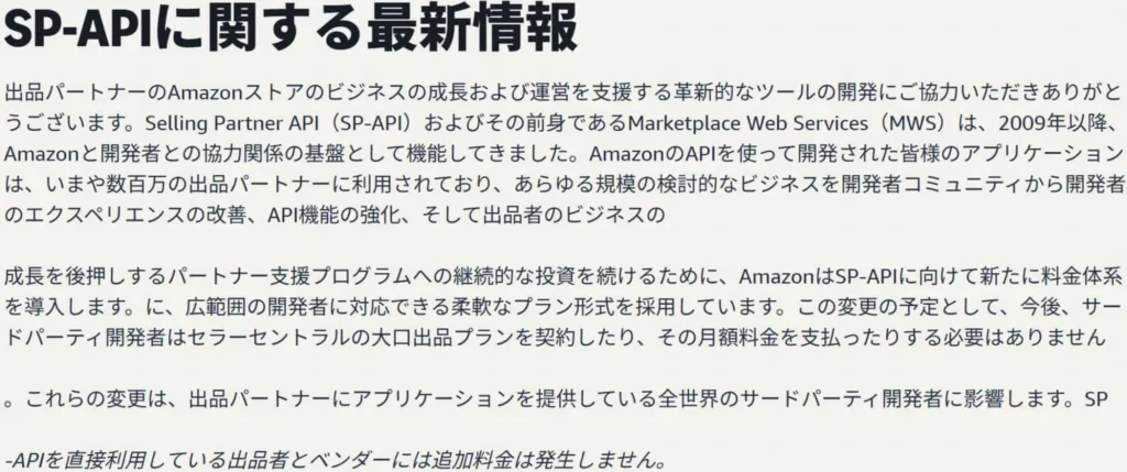 まずは、Amazon SP-API新料金体系導入についてお伝えします。