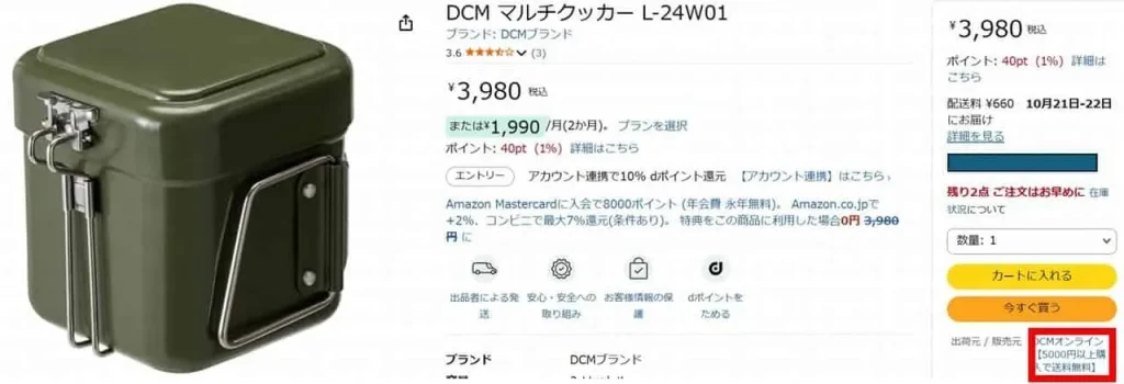 DCMブランド商品は、上図のように、パッケージに「DCMブランド」と書かれたロゴがあります。