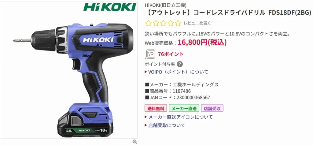 上記の電動ドライバーですが、DCMオンラインでは16,800円で販売されています。