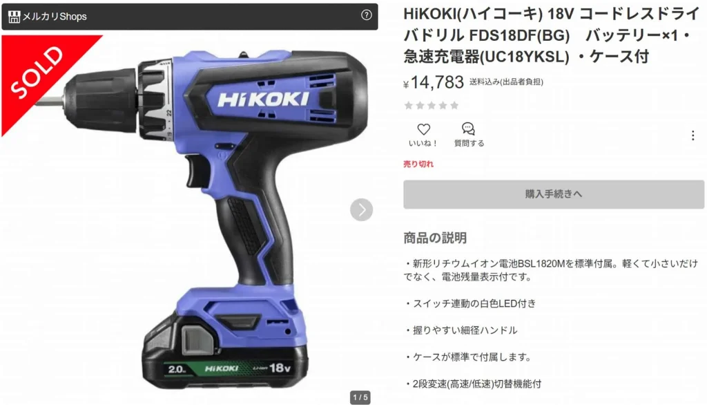 そこで、この電動ドライバーがメルカリでいくらで出品されていたか見てみます。