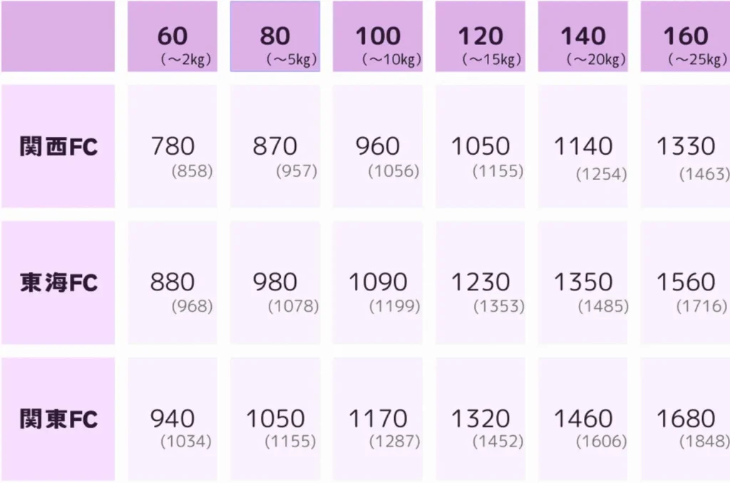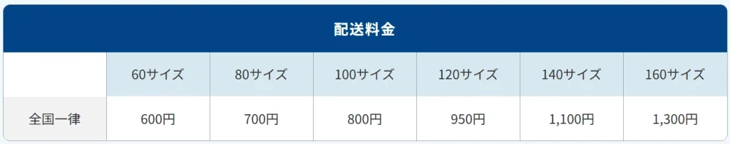 | 配送料(60サイズ) | 780円 | 600円 | 45円~ |