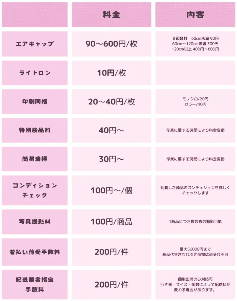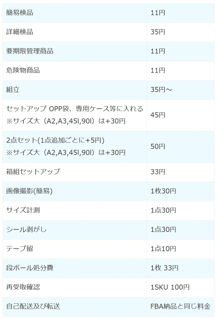 先にお伝えした通り、FBA納品代行業者の料金設定は基本料金の他、オプションが細かく設定されています。