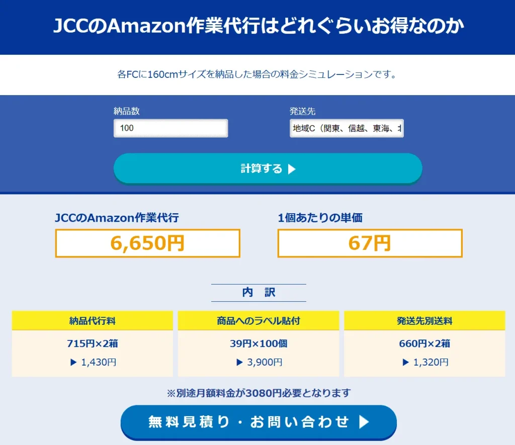 大阪の運送会社のため、FBA倉庫までの配送料は、関西方面のFCが安価になります。特に関西方面で活動している方は、検討の余地があるでしょう。