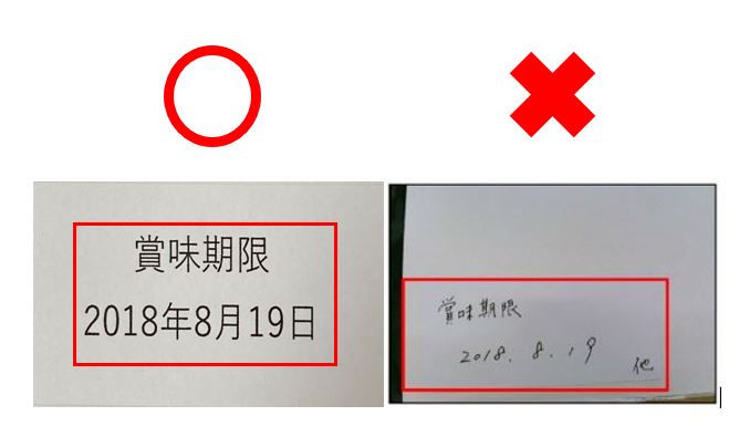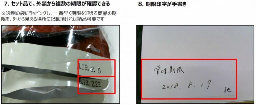 - 商品または外装に明確に賞味期限が表示されていなければいけない