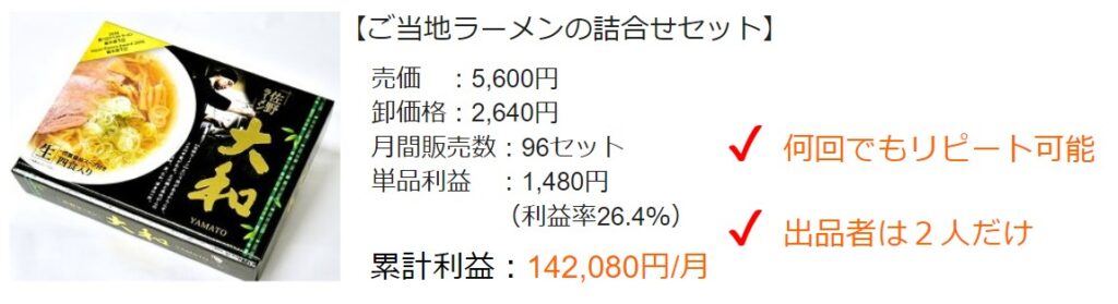 メーカー仕入れであればこのように利益率を上げることができますし、安定した商品の仕入れも実現できます。またこういった商品を増やしていくことで利益が積みあがっていくので安定したビジネスを展開することも可能となっています
