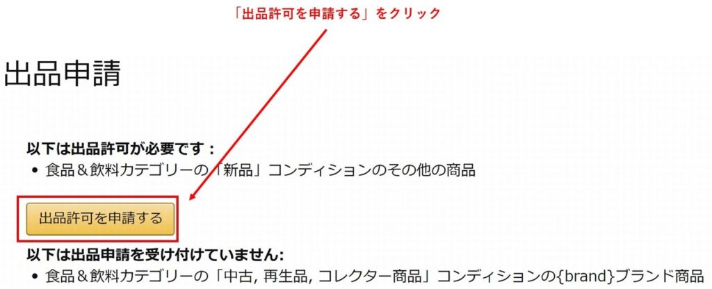 ②次に「出品許可を申請する」をクリックします。