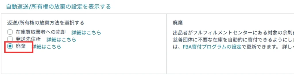 FBA販売不可在庫の「返送」「廃棄」は自動設定も可能