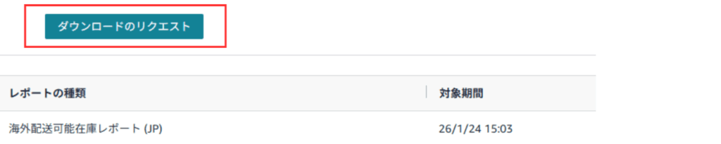 ダウンロードしたレポートには全ての在庫が表示され、海外配送可能商品の可否は