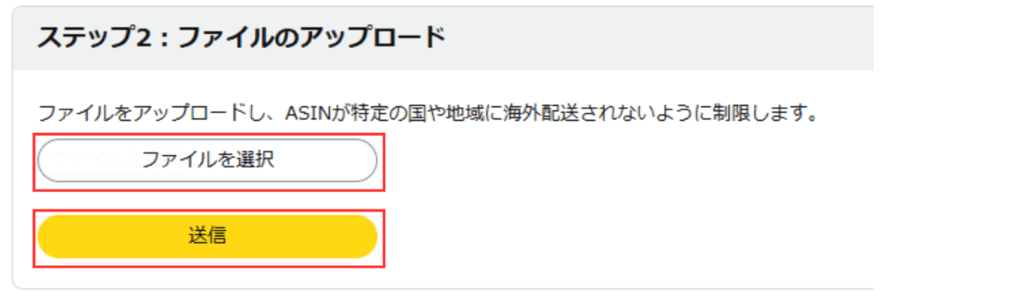 ④「ステップ2:ファイルのアップロード」の欄に作成した③のファイルを選択して「送信」をクリックすれば完了です。