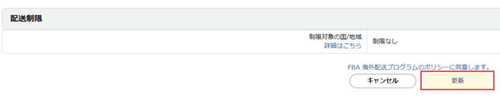 ③前画面の「配送制限」の欄の下の「更新」をクリックすれば完了です。