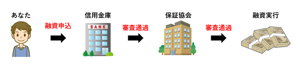 信用金庫と保証協会は別の機関となっているので、信用金庫に融資を申し込むと、信用金庫がまず審査を行い、通過後は保証協会が審査をします。