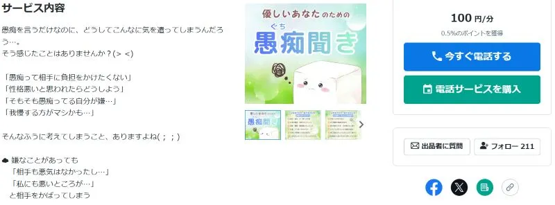 主に「ココナラ」などのスキルシェアプラットフォームを利用して、電話やチャットで相手の話を聞いていきます。