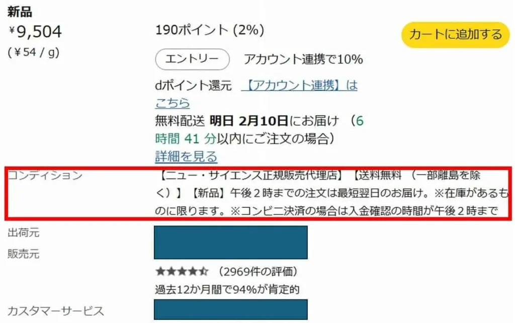 上図のように、商品ページ中の出品者のコンディションの記載があるかどうかも参考になります。