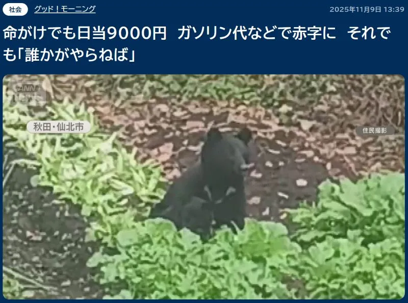 また、クマなどの有害鳥獣の報奨金が少ないことも社会問題になっています。