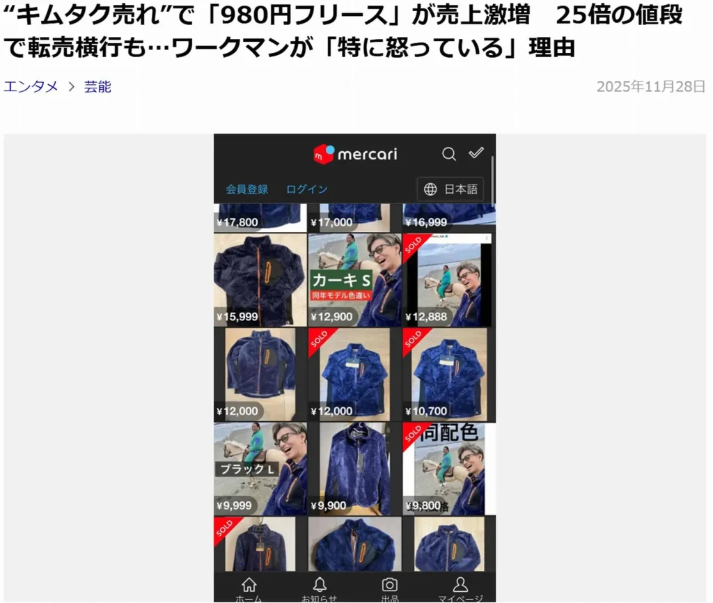 上図のように、メルカリの高額転売の問題については、度々ニュースになっています。
