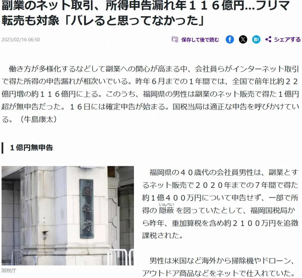 え、大丈夫なの? 前にネットニュースでメルカリの転売ヤーに税務調査がやってきたという特集を見たよ