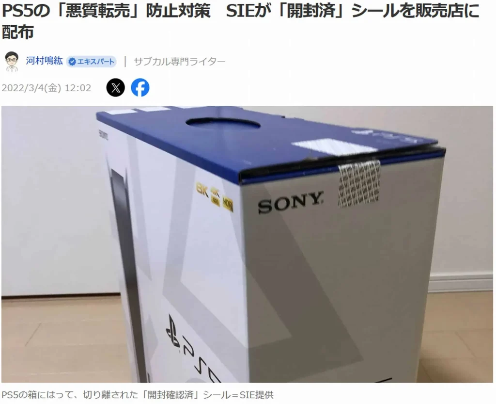 開封済シールについては、PS5の転売対策で実際に行われています。